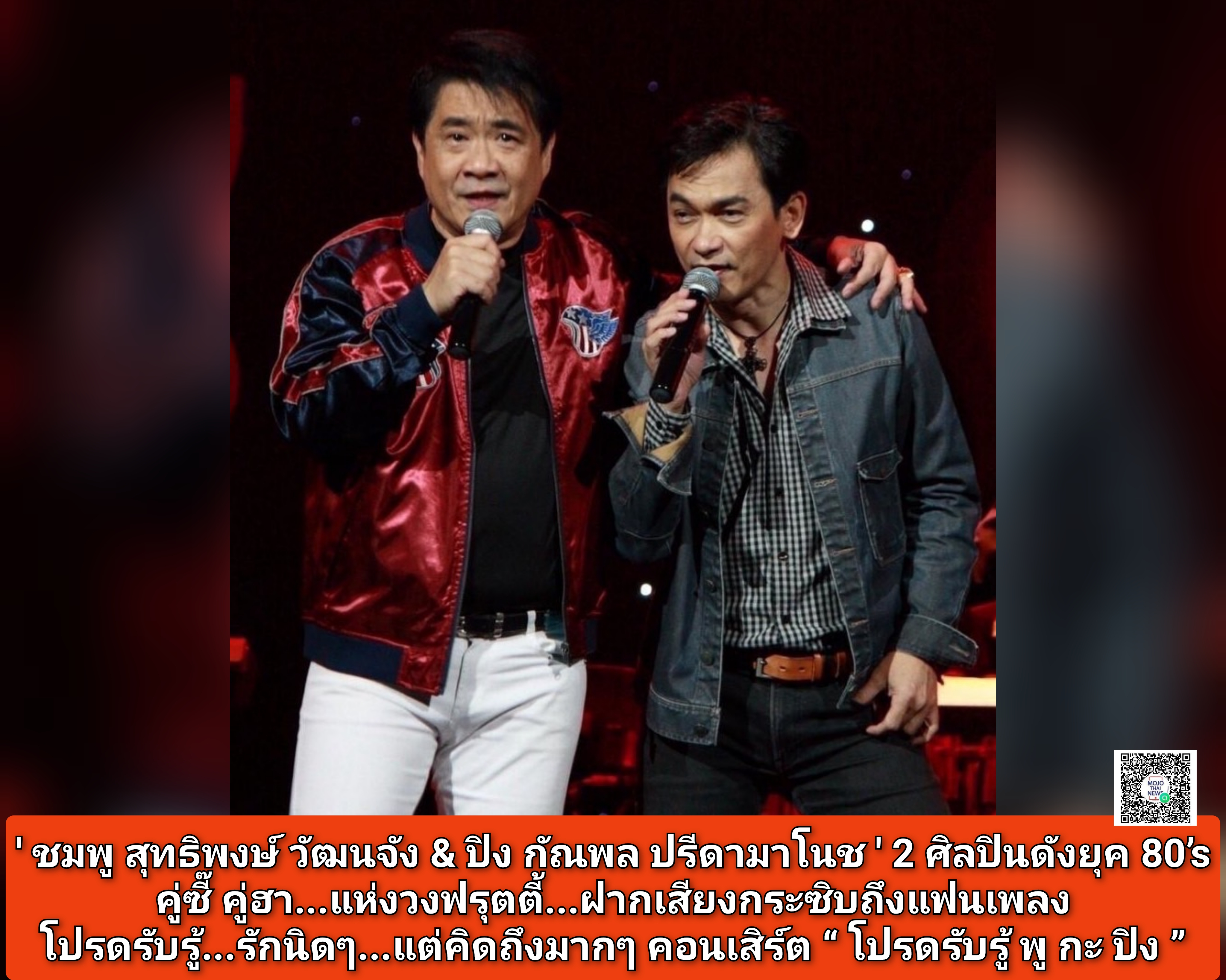 รักนิดๆ...แต่คิดถึงมากๆ 2 ศิลปินคู่ซี๊ คู่ฮา แห่งวงฟรุตตี้...ชมพู สุทธิพงษ์ วัฒนจัง & ปิง กัณพล ปรีดามาโนช พร้อมจับมือขึ้นเวทีศาลาเฉลิมกรุง ถ่ายทอดเรื่องราว...กว่าจะมาเป็น พู กะ ปิง ในวันนี้...มอบความสุข ความฮา! เรียกเสียงหัวเราะ ผ่านเพลงดังหลากสไตล์ ในคอนเสิร์ต “ โปรดรับรู้ พู กะ ปิง ” วันอาทิตย์ที่ 29 มิถุนายน 2568 รอบ 14.00 น. ณ โรงมหรสพหลวงศาลาเฉลิมกรุง